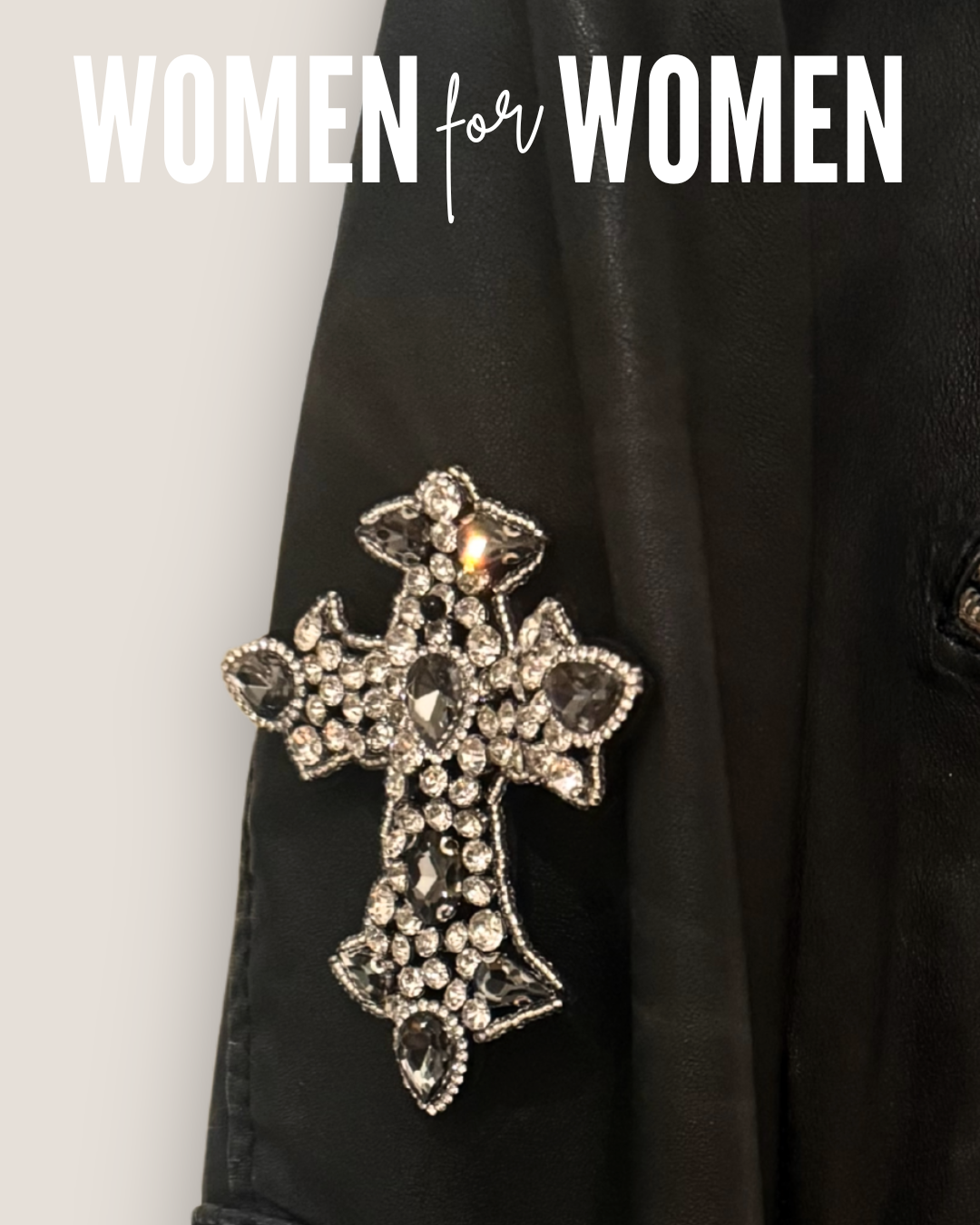 Am rechten Ärmel setzt ein Kreuz aus schwarzen und kristallenen Steinen einen zusätzlichen, kunstvollen Akzent.